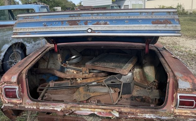 Mitchell G., thanks for your tip here! Back in the mid-sixties, this Malibu is stated to have started off with a 327 engine connected to a 4-speed manual transmission, so it began life with a desirable combo. They’re both long gone, with no mention of when the pair was removed or for what reason. No photos from the engine compartment are included either, so it’s a mystery of what sort of surprises may be hiding under the hood. Once things get sorted out in the bay, the next owner will have to decide whether to install another small block or maybe source a 396 and go with that instead. Among the parts that can be seen in the trunk is a radiator, so hopefully, this component can be the start of making things happen here.
