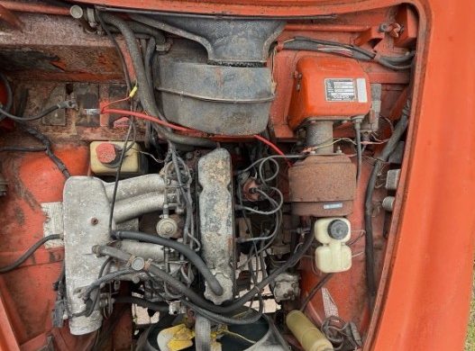 Here’s that recalcitrant B20E inline four, good for 112 hp – a power downgrade versus previous years thanks to a lower compression ratio. The fuel/air mix is managed by Bosch D Jetronic injection. Disc brakes at all four corners handle the “whoa”, and a four-speed manual with overdrive was standard. An automatic was an extra cost option, as was air conditioning, but Volvo took pride in offering a long list of desirable standard equipment. This car’s underside is crusty, but that’s not the half of it…. the sills are rotting off the car.