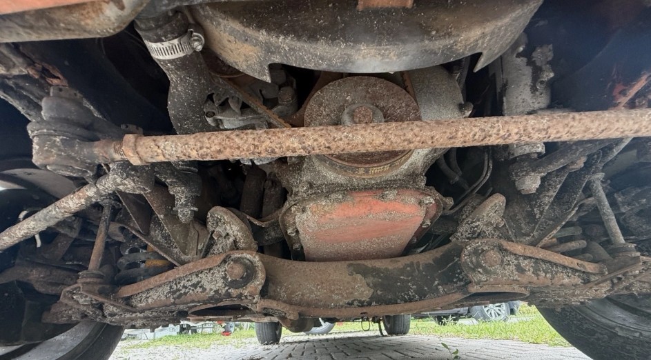 Here’s that recalcitrant B20E inline four, good for 112 hp – a power downgrade versus previous years thanks to a lower compression ratio. The fuel/air mix is managed by Bosch D Jetronic injection. Disc brakes at all four corners handle the “whoa”, and a four-speed manual with overdrive was standard. An automatic was an extra cost option, as was air conditioning, but Volvo took pride in offering a long list of desirable standard equipment. This car’s underside is crusty, but that’s not the half of it…. the sills are rotting off the car.