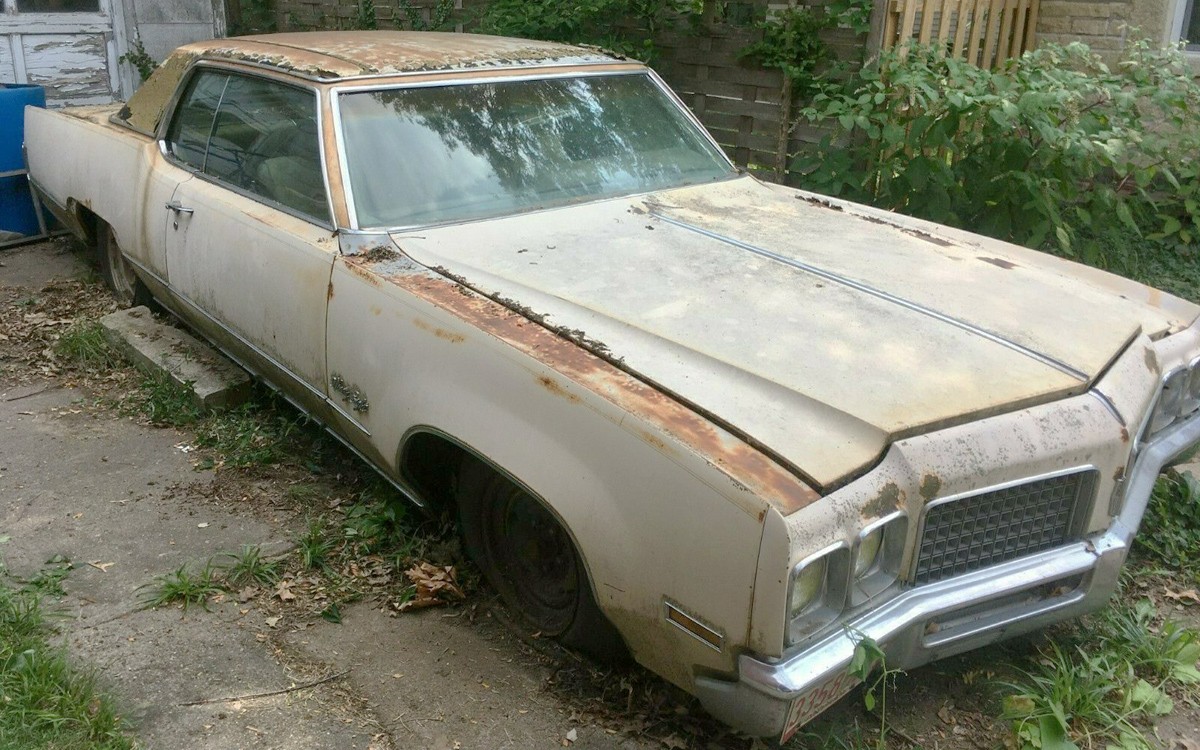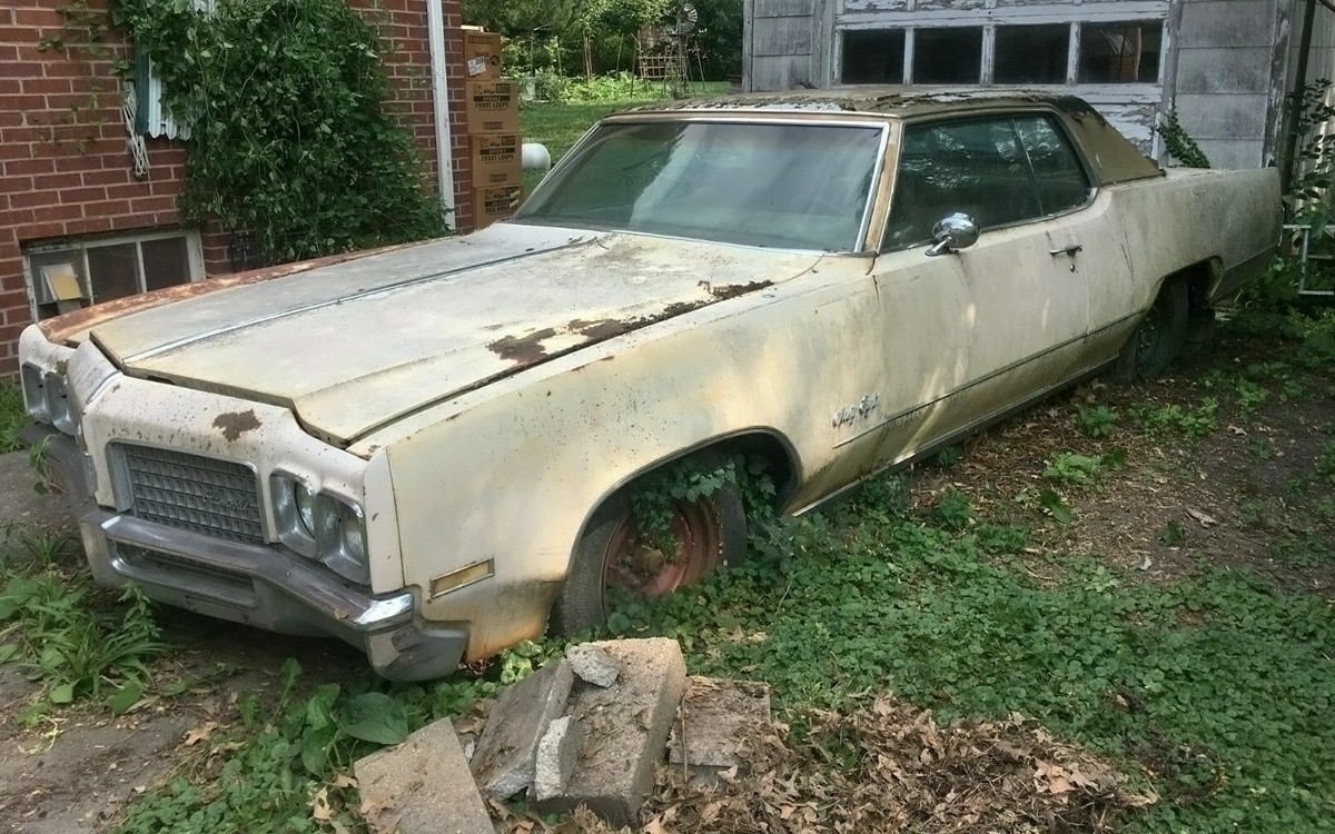 Here’s the reason that most of the bidders have probably shown up to bat: Oldsmobile’s fantastic 455 cubic-inch V8 with a wheel-cover-spinning-into-the-ditch 365 horsepower. I know for a fact that they do fly off, especially on gravel roads when certain teenage drivers are being a bit harder on the gas pedal than the owner would be. Hagerty’s at $6,800 for a #4 fair condition car which is far from the condition that this one is in, but their #3 good condition value of $15,200 seems almost attainable with this car to me unless it really is worse than it appears in the photos. What are your thoughts, can this one be saved without breaking the bank?