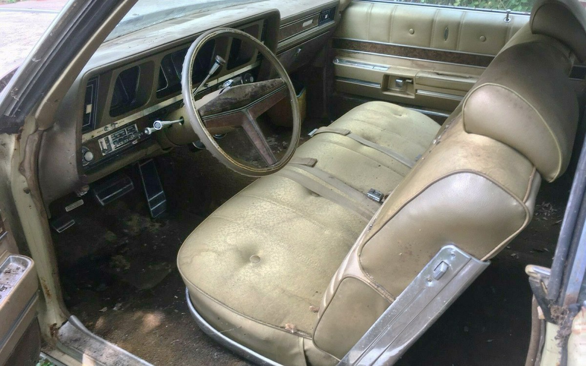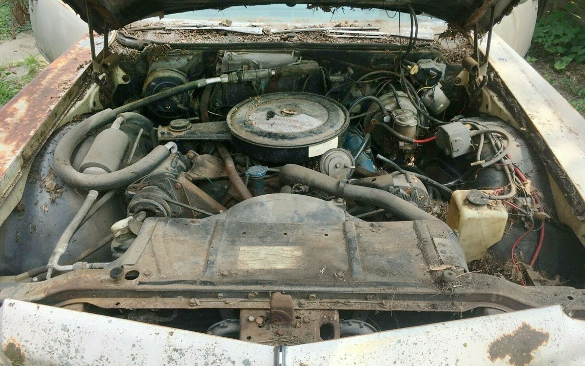 You can see that this particular car hasn’t been on the road in quite some time. That being said, it somehow still looks incredibly nice, solid, and rust-free to me, other than the visible surface rust. The seller says that it hasn’t run in twenty years and it’s basically a “Get a free car with the purchase of a 455 V8” sort of deal. They say that it’s “roached out” but man, I just don’t see it. A YouTube detailer would pay this car off in 37 seconds by showing it being cleaned and detailed right where it sits.