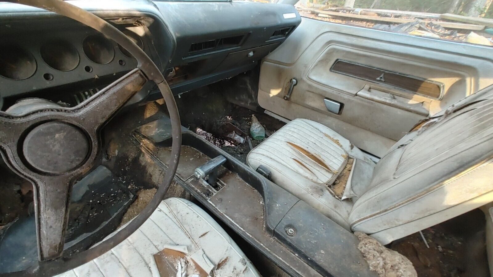 The VIN suggests this Challenger may have had the SE option when new as the interior looks a bit nicer than standard. But the seats, carpeting, and everything else are pretty rough and there is very little there that can be salvaged. If this car were a Challenger 340 or had a 383, 440, or Hemi, a buyer would be more inclined to restore it. These muscle cars are known to fetch six figures and higher, but I doubt there are any $100,000 318s out there.