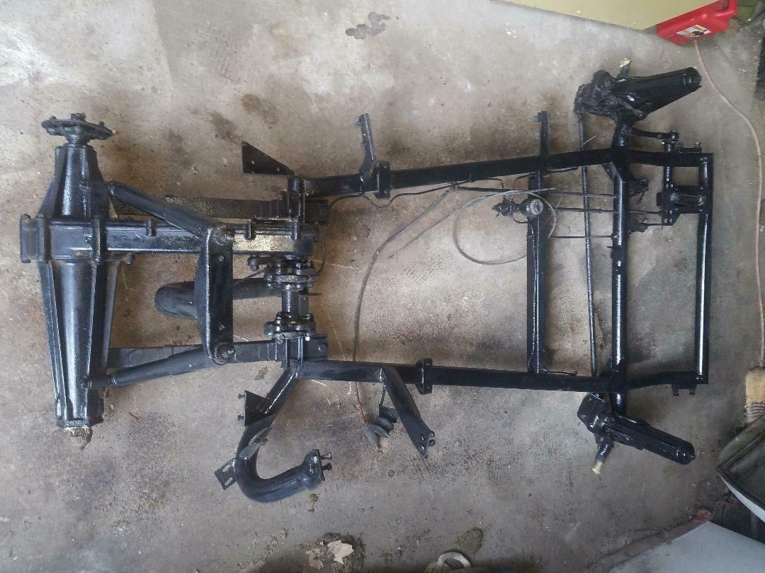 As we all know, this body sits at the end of the driveway where the Fiberfab is parked. This old gentleman owner had quirky taste, I hope he is around long enough to reap the benefits of the sale of this car and the other unit. I keep pondering the removal of all the parts, then the open space left behind used to store firewood (see photo album). Presume only for the last 8 years. Having the frame done gives me some hope that the whole works can be delivered to a new, brightly lit shop to get the restoration back on track. Good luck to the new owner.