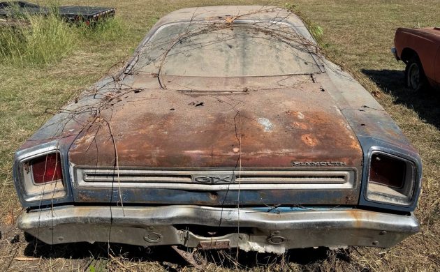 The 440 engine is also long gone, but fortunately, we do get to see the underside, thanks to a forklift operator raising this car into the air. The railing is strong enough to have supported all that weight, but it’s hard to tell if the frame corrosion is mostly on the surface or if it has penetrated deeper. The gas tank and floors will need replacing, but it’s possible that the rails may be solid enough to retain. It’ll take a lot of work to get from point A to B here, but a 1969 GTX is certainly a desirable Plymouth, and I believe this one’s probably worth the effort. What do you think?