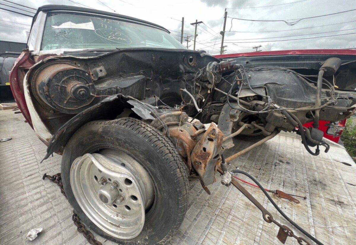 A real-deal Chevelle Super Sport is hard to identify after 1968 as it was relegated to option status rather than a series of its own. Since the seller doesn’t try to capitalize on this car being an SS, we should assume that it’s not. Since the VIN does tell us it came equipped with a V8 engine, this car may have once had a 307 or 350 cubic-inch V8 under the hood. But that was apparently pulled after the accident, as was the transmission, which we’re told was an automatic. So, the Chevy isn’t even a roller due to the considerable damage it received.
