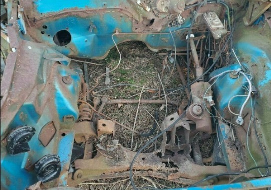 The front cross member is rusted through…did it sit in a pond?