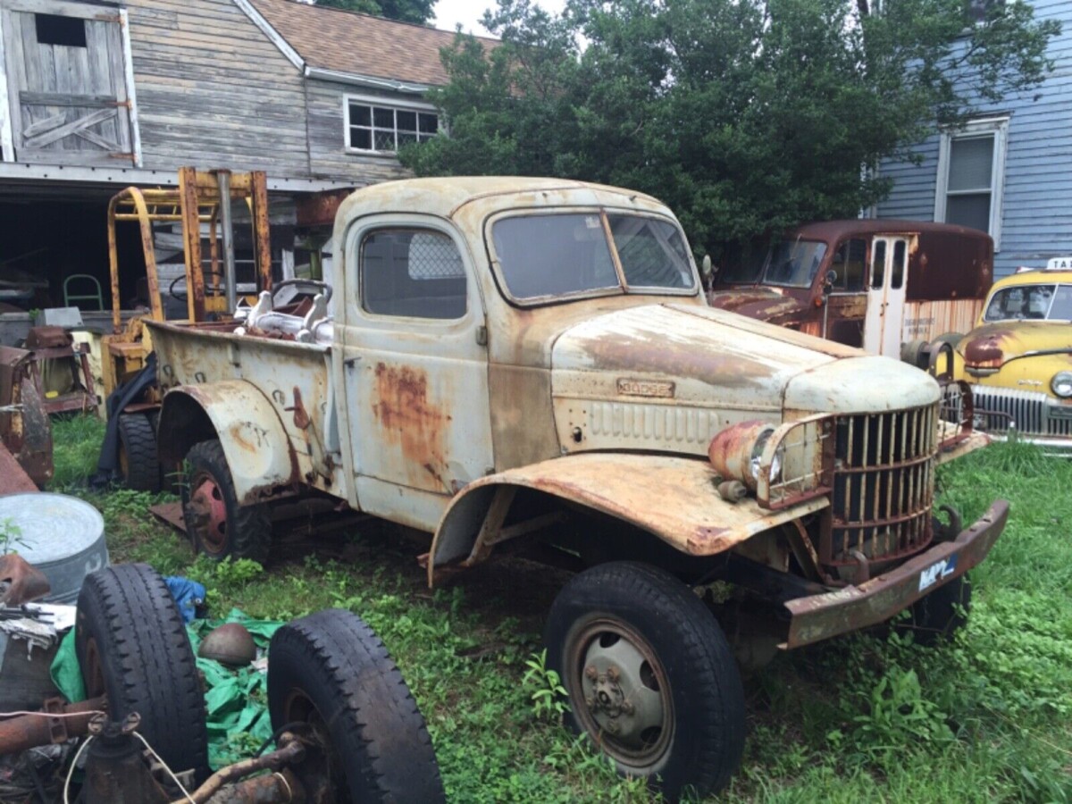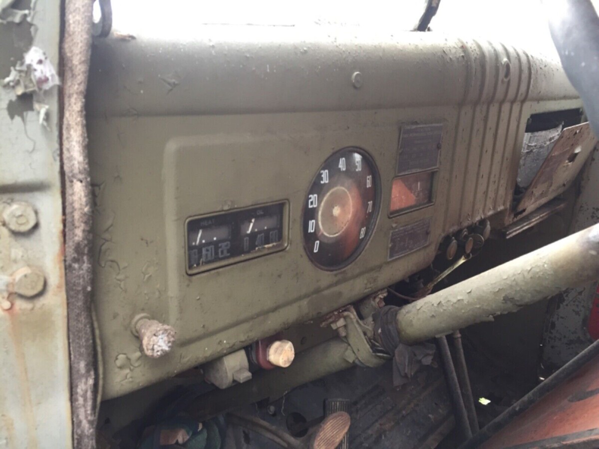 Decades later we find one of these Dodge WC series trucks sitting in a yard in New York. This truck is advertised as complete and original. It was started a few weeks ago and is said to sound good and have good oil pressure. As the picture shows below, it didn’t take too many high-tech tools to awaken this flathead Mopar engine from its slumber. Despite the engine running, there is rust in the cab and the truck’s fuel tank needs cleaning or replacement. A gravity type fuel tank was used to crank it up.