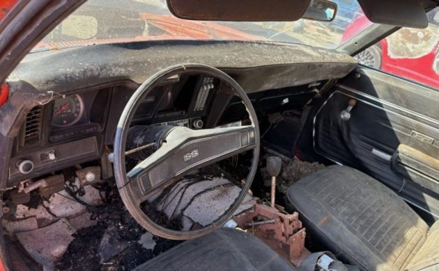 Four iterations of the 396 cubic inch V8 were offered in 1969, ranging from the 325 hp L35 to the rare L89 with aluminum heads and 375 hp (only 311 were built). It probably doesn’t matter now because you’ll have to hunt down another motor if you want to restore this Chevy. The body is going to need loads of work, which includes new floors, frame rails, rocker panels, quarter panels, and a lot more.