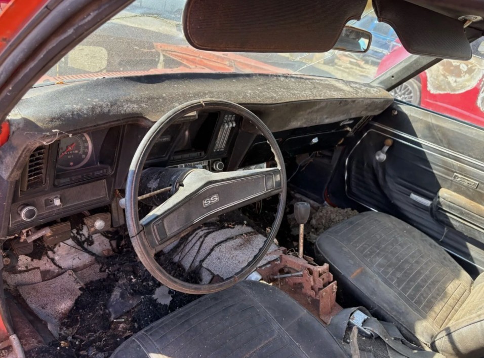 Four iterations of the 396 cubic inch V8 were offered in 1969, ranging from the 325 hp L35 to the rare L89 with aluminum heads and 375 hp (only 311 were built). It probably doesn’t matter now because you’ll have to hunt down another motor if you want to restore this Chevy. The body is going to need loads of work, which includes new floors, frame rails, rocker panels, quarter panels, and a lot more.