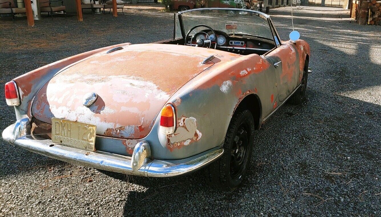 I cut my eye teeth wrenchin on these, some fiats, anda few lancias as a mid/late teen. I musta had the best parents as they let me drag home these lill jewels (not so much rust as here, justa lota twisted metal – accidents) in the mid’n late 60s. My buds had the brandie new stang 2+2 FB, a 442, vetts etc but I could afford a run to “goldie’s” JY, Quincy (been wrkin since my single didgits) for one of these w/a tree limb thru the cloth top, pass side fender up in the engine compartment, etc. Back on the road, safe, reliable and inspectable till sold & the next ‘free ride’ at goldie’s caught my eye~