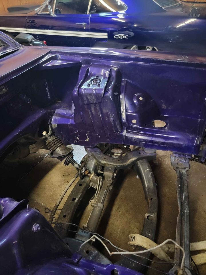 1970 Plymouth Superbird – real deal or clone painted purple-ish blue that also needs some glass