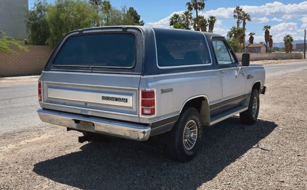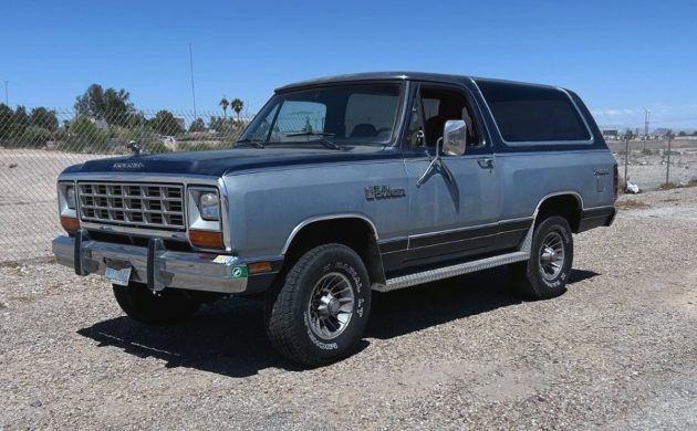 A full-sized SUV with just two doors? There aren’t many SUVs with this body style configuration being made today, and I can’t even think of one off-hand. No, the new Bronco isn’t a full-sized SUV, I’m talking about one the size of a second-gen Bronco, or a Chevy Blazer, or something like this 1985 Dodge Ramcharger Royal SE 4×4. The seller has this one listed here on eBay in Las Vegas, Nevada, and the current bid is $670, but, of course, the reserve isn’t met.